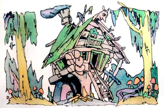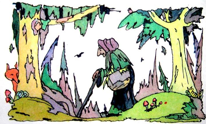 Жила она в крохотной избушке, одиноко стоявшей в лесу. Крыша избушки покривилась от ветра, труба
