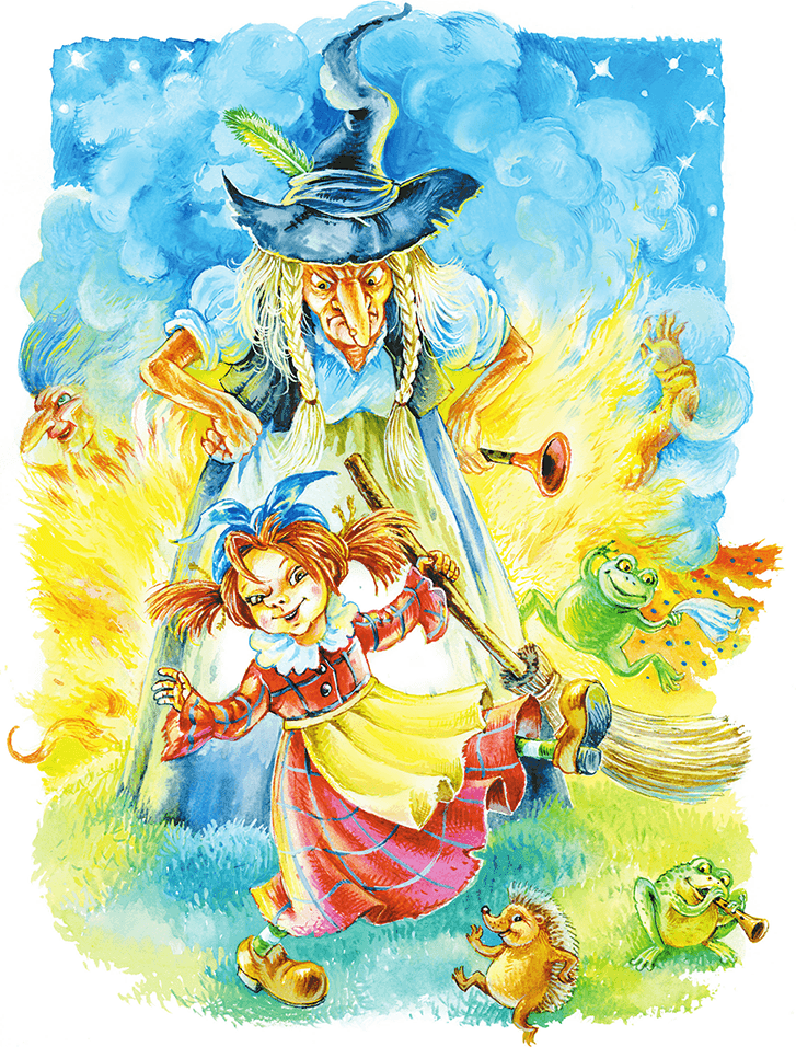Да! Всё обошлось бы хорошо, если бы Маленькая Баба-Яга не перебежала в танце дорогу своей собственной тётке – ветряной ведьме Румпумпель. Кто-кто, а тётка Румпумпель шуток не понимала. Она была злой и надменной.