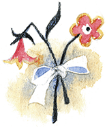 Стебелёк и листья растения были зеленовато-голубые, а среди них красовался ослепительно-красный цветок с жёлтой каймой.