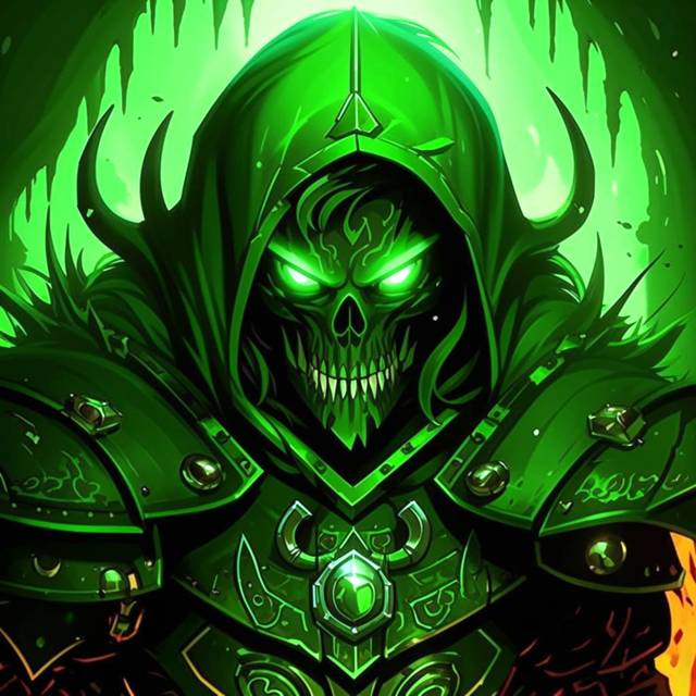 Неожиданно для самого Даймона на миг этой чрезвычайной злобы в моменте проявилась истинная сущность Колуна. Тёмные его доспехи объяло странным зелёным светом, а вместо лица с бледной кожей проявился череп. Зелёные глаза полыхнули как два