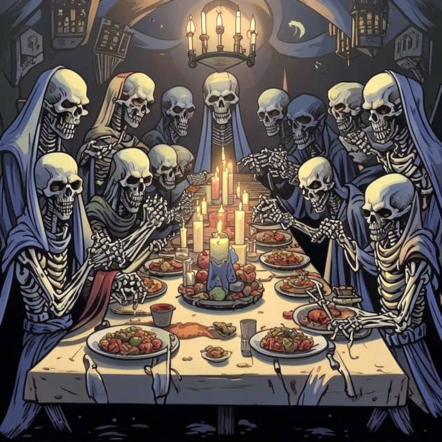 А стоило магине льда взмахнуть рукой, как на столе половина вся кровь в кувшинах свернулась, а блюда снежной корочкой покрылись. Этого не смог стерпеть даже толстый скелет. Подскочив, он закричал: