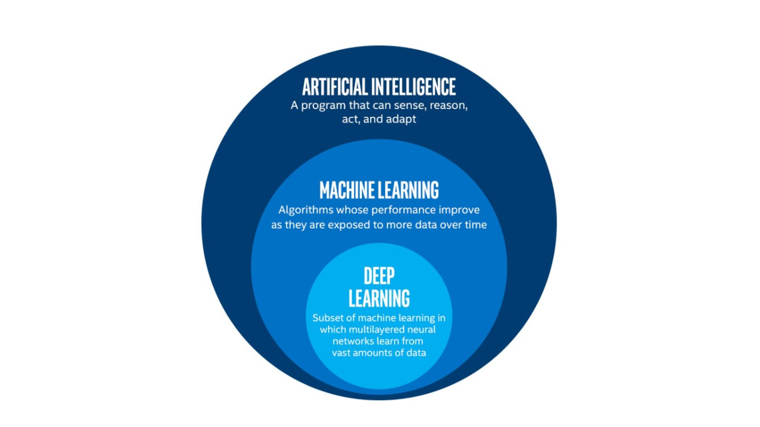 И искусственный интеллект – это очень широкое понятие, в которое входят машинное обучение и глубокое обучение.