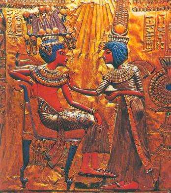 жрецов — этой касты потенциальных заговорщиков с тысячелетним опытом организации дворцовых переворотов, интриг и просто тайных убийств.Тутанхамон с царицей.