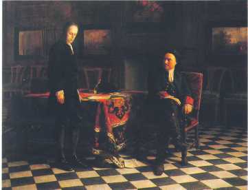 посоветоваться душевно, нравственно, правильно ли взбунтовались четырнадцать выпускников Академии, отказавшись участвовать в конкурсе на золотую медаль. Ге взволнованно заявил, что ежели бы он был с ними, то сделал бы то же.Петр I допрашивает царевича Алексея Петровича в Петергофе.