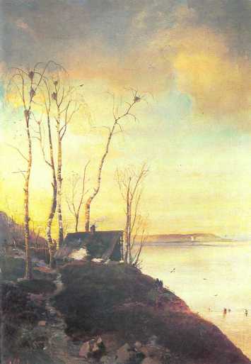 Так тривиальный романтический мотив получил новое звучание. Двадцатилетний художник остро чувствовал красоту, но еще робко подходил к своей, саврасовской» теме.