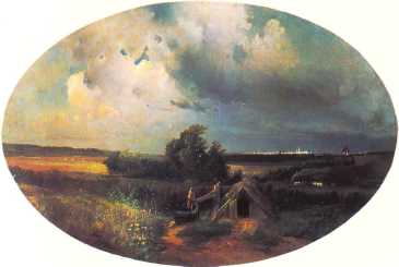 Новая семья предъявляет свои счеты, свою власть, диктует свои вкусы. С легкой руки Герца в творчестве Саврасова на много лет укрепилось влияние Калама, швейцарского живописца, не лишенного эффектности, но совершенно чуждого русской школе.