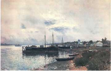 Так небольшой холст с тремя одинокими черными челнами и сверкающей гладью вод обретает особый живописный строй.