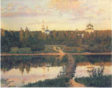 «Бродя по окрестностям, вдруг наткнулся на ютившийся в рощице монастырек. Он был некрасив и даже неприятен по краскам, но был такой же вечер, как когда-то в Саввине: утлые лавы, перекинутые через речку, соединяли тихую обитель с бурным морем жизни, и в голове Левитана вдруг создалась одна из лучших его картин, в которой слилось воедино… и вновь увиденное, и сотни других воспоминаний».