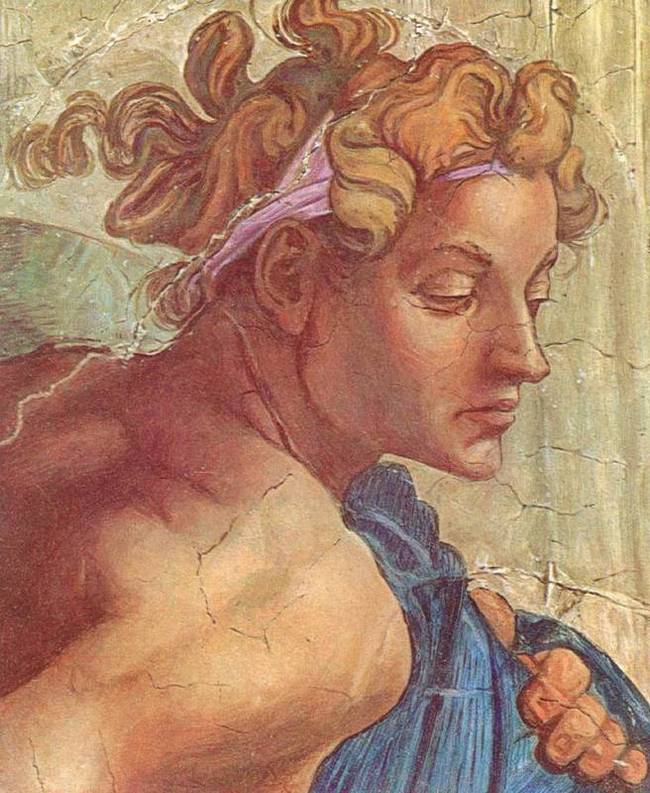 Вместе с героями христианской мифологии Микеланджело изобразил несколько сивилл, персонажей мифологии античной Греции. Самой прекрасной из них является дельфийская сивилла.