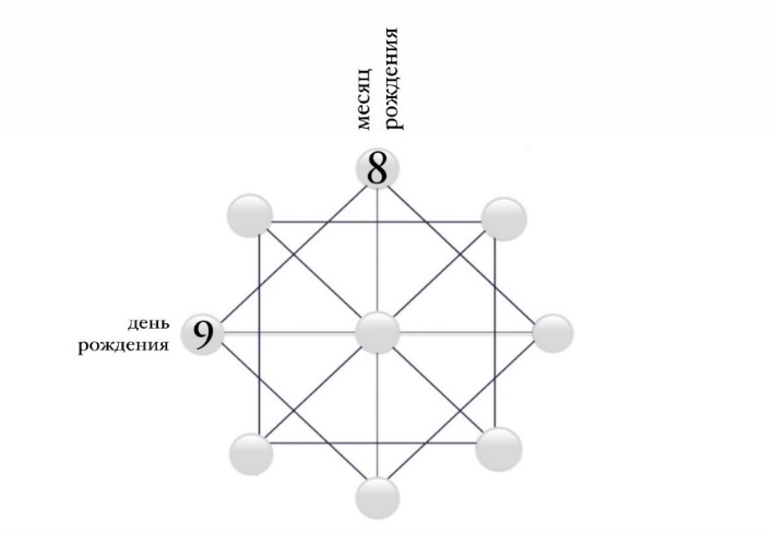В нашем случаем месяц рождения август, соответственно вносим 8 энергию на указанную позицию в матрице.