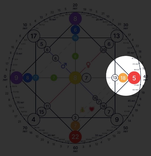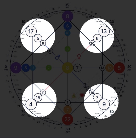 Второй цент Матрицы. Второе социальное предназначение. Для этого нужно сложить вершины Родового квадрата. 17+13+9+4= 7