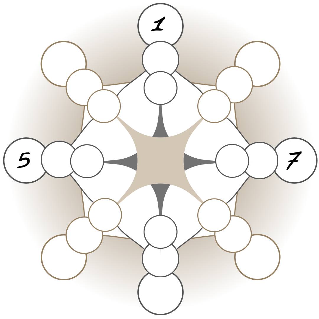 В верхний угол матрицы мы вписываем аркан месяца рождения. Он всегда будет в диапазоне 1-22, поэтому упрощать не надо, а сразу вносим значение в матрицу: