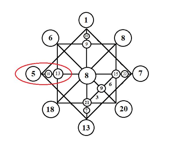 Первая энергия в ключе (на рисунке это 5) расскажет нам о том, для чего ваша душа пришла к родителям. Вторая энергия (на рисунке это 18) – задача отношений. Третья энергия (на рисунке это 13) – ошибки во взаимоотношениях с родителями и своими детьми.