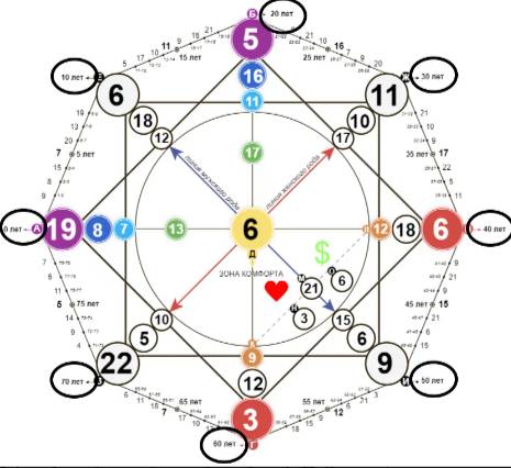 Период 10 лет в нашем примере пройдет под 6 энергией. Аналогичным образом проводим все расчеты.