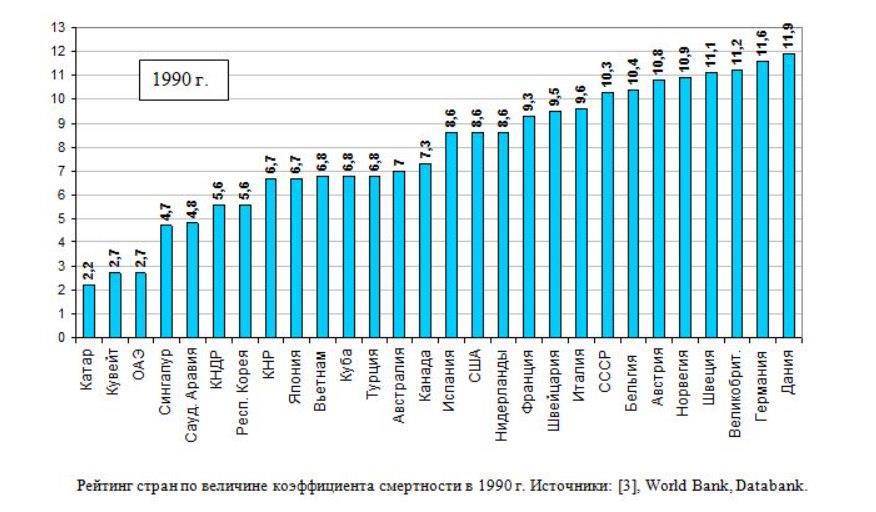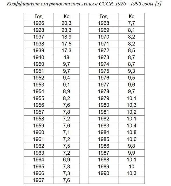 Глобальная раскладка по категориям в СССР была более-менее типичная, как для среднего индустриального государства. Половина — сердечно-сосудистые заболевания, со всеми инфарктами и инсультами. Шестнадцать процентов — раки и опухоли. Семь процентов — болезни органов дыхания. Одиннадцать процентов — всякие внешние воздействия, включая убийства, самоубийства, травмы и прочие катастрофы. Ну и остальное — каждой твари по паре.