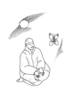 В центре листа белой бумаги поставьте точку. Это уже величайший магический акт. Сядьте удобно на стул и выпрямите спину. Лист желательно закрепить на расстоянии 30 см от глаз. Вам не должны мешать посторонние предметы или звуки. Освободите свой ум от мыслительной деятельности, все внимание сконцентрируйте на точке. Постарайтесь не моргать. Ничего не ожидайте, просто рассматривайте точку. Если вы поймаете себя на посторонних мыслях, дайте им свободно течь. Особенно если ваш ум будет отвлекаться на следующие мысли: «Не занимайся ерундой, не теряй зря времени, займись „настоящим“ делом» и т. д. Важно просто продолжать концентрацию. Если в процессе созерцания вас начнет раскачивать или в теле появятся ощущения боли, тяжести, тепла или комфорта, то знайте, что ваше погружение происходит успешно. При ухудшении самочувствия вы можете прервать медитацию.