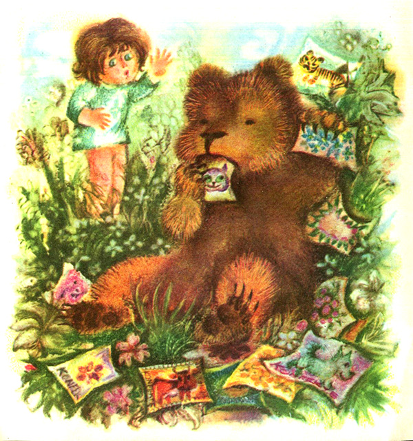 Однажды Мишка-Медовик влип в книжку: хотел почитать, но книжка вдруг захлопнулась и так его сплющила, что он стал плоским, как поздравительная открытка. Мать никак не могла отодрать его от книжки. Пришлось подержать страницу над кипящей водой. Только тогда Медовик отклеился от бумаги, как почтовая марка. Всё такой же плоский. Медведица влила в сына пять литров мёда, и Мишка-Охочий-до-Мёда снова стал круглым и сладким. Живым.