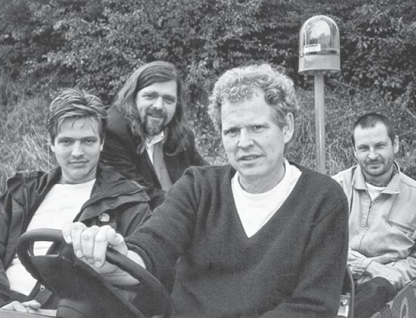 Четыре участника «Догмы» – на фотографии в первом триеровском гольф-каре – были тщательно отобраны под впечатлением от семи самураев в одноименном фильме Куросавы. Каждый из них должен был представлять определенное направление: Томас Винтенберг (слева) – будущее, Серен Краг-Якобсен – прошлое, Кристиан Левринг – рекламные фильмы и сам Триер… Ларса фон Триера.