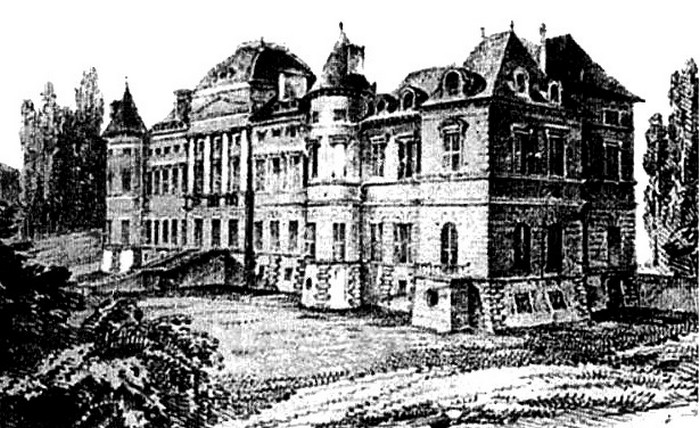 Вид замка во времена Куртиля. В 1835 г. старинный замок был разрушен, но в конце 1830-х годов восстановлен.