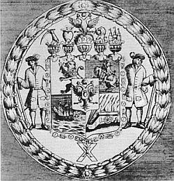 Герб А. Д. Меншикова. Гравюра из книги «Ляврея, или венец безсмертныя славы». 1714 г.