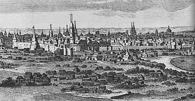 Москвы в 1702 г. Иллюстрация к книге К. Де Брюйна (издание 1704 г.)Петр I. Я. Веникс. 1697 г.