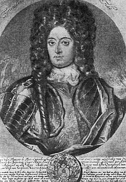 Франц Яковлевич Лефорт. Гравюра П. Шенка. 1698 г.