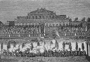 Дом Ф. Я. Лефорта в Немецкой слободе. Гравюра И. Шхонебека. Начало XVIII в.