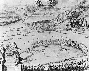 Штурм русскими войсками шведской крепости Нотебург 11 октября 1702 г. Гравюра А. Шхонебека. 1703 г.