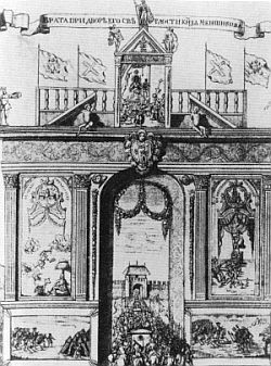 Триумфальные ворота 1709 г. в Москве, возведенные на средства А. Д. Меншикова. Архитектор И. Зарудный.