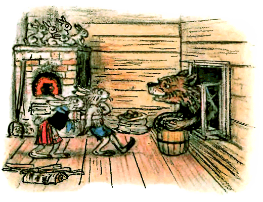 — Это он! Волк! Заприте дверь! Прячьтесь все! — закричал Заяц.