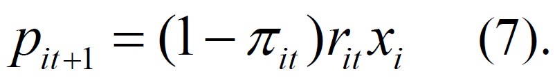 Теперь каждый актор принимает решение о выборе стратегии: какую долю полученного ресурса инвестировать в производство, а какую – в изменение правила (селектора . Ресурсы, инвестированные в политику, определяют политический вес каждого актора. Политические веса определяют положение селектора st). Долю ресурса, затрачиваемого актором на изменение правила в данный момент времени, мы обозначим it (от др.-греч. ). Соответственно, доля ресурса, затрачиваемого на производство, составит 1-it. Тогда объем ресурса, направляемый актором в политику, составит itrit, и объем ресурса, направляемый на создание продукта – (1-it)rit. Чтобы рассчитать, какой объем продукта произведет актор, нужно скорректировать это произведение на индивидуальный уровень эффективности: