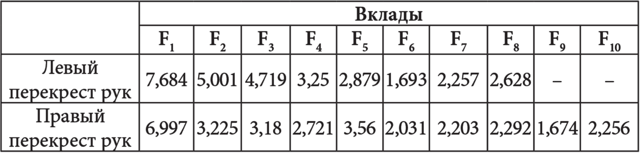 (–385,36; –209,26) для правого показателя пробы «перекрест рук».