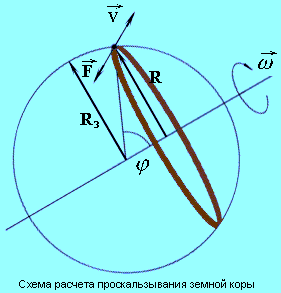 Тогда для любого тонкого кольцевого слоя земной коры в плоскости, перпендикулярной оси "проскальзывания", из закона Ньютона следует: