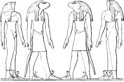Хух и Хаухет, Амон и Амаунет — боги Великой Восьмерки города Хемену (остальные пары богов гермопольской Восьмерки изображались аналогично)
