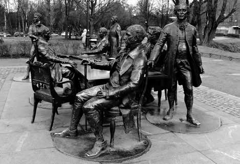 Скульптурная композиция «Зодчие» в Александровском парке – восемь великих архитекторов, застраивавших Петербург: Воронихин, Баженов, Тома де Томон, Росси, Растрелли, Трезини, Захаров и Монферран
