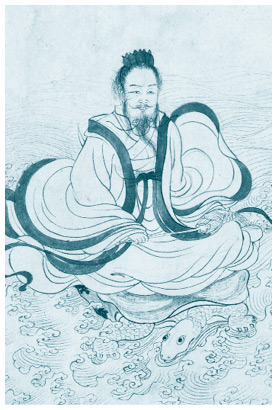 Хэ-бо, «повелитель реки», — древнее божество Хуанхэ, одной из главных рек Китая. Он был химерой, как и многие другие древние боги, и имел