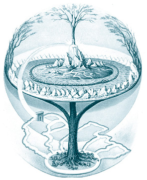 Иггдрасиль с волшебными источниками у корней. Иллюстрация Олуфа Багге. 1847 г.