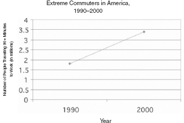 Крайнее явление данной тенденции - по меткому названию Бюро переписи населения - экстремальные «маятниковые мигранты», то есть те, кто каждый день вынужден проводить более полутора часов в транспорте. В 2000-м в Америке насчитывалось 3,4 миллиона таких путешественников - почти вдвое больше, чем 10 лет назад.