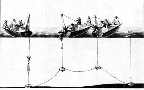 Постановка мин Нобеля под Кронштадтом. С акварели Э. Нобеля