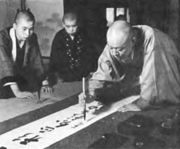 Каллиграфия, или умелое владение кистью для письма, остается одним из главнейших искусств Японии, не уступающим по своему значению живописи. По традиции японские художники рисуют, сидя на коленях, разложив перед собой бумажный или шелковый свиток. Чтобы стать мастером, необходимо много лет ежедневно тренировать гибкость мускулов кисти и руки. Ученики мастера называются дэси («младшие братья»), подобно тому, как называли первых последователей исторического Будды.