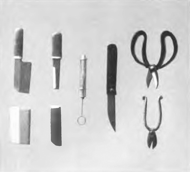 Садовые инструменты, используемые при составлении церемониальных композиций.