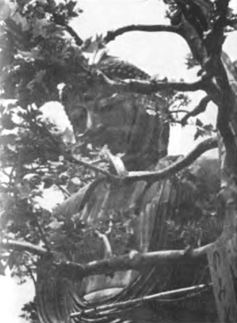 На Западе не всегда принимается во внимание тот факт, что дзэн уходит своими корнями в буддизм. Эта статуя Великого Будды в Камакура отлита в 1252 г. Высота этой бронзовой фигуры — свыше сорока футов, а лицо длиной более восьми футов. Будда изображен во время сидячей медитации, его руки положены на колени, ладонями кверху, большие пальцы касаются друг друга. Его глаза наполовину закрыты, весь его облик дышит покоем, который, согласно всем учениям буддизма, характеризует просветление.