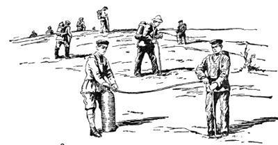 Добежав до обоза, техник услышал резкий свист и шипение выходящего таза. Но что это значит? Шипение — слышалось вовсе не с той стороны, где стояли приготовленные на завтра баллоны. Техник зажег спичку и пересчитал баллоны. Не хватало трех штук. Спичка погасла, обжегши ему пальцы. Где же стоят эти проклятые баллоны? Неужели рабочие забыли их где-нибудь в стороне?