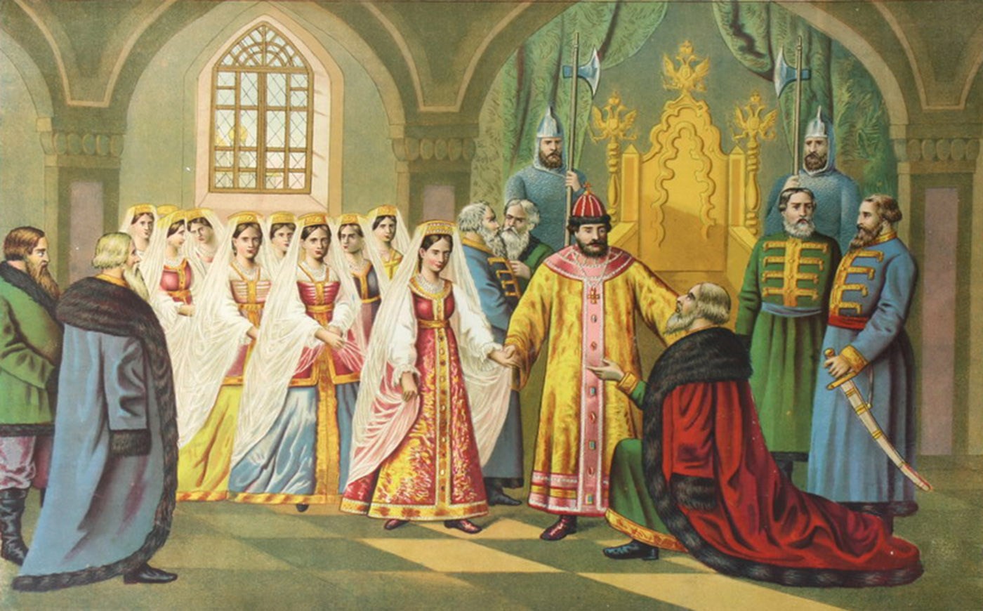 Выбор невесты царя Алексея Михайловича. Хромолитография А. Абрамова