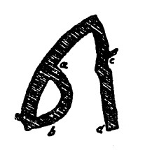 Мы нашли, что вся длина третьей расселины триста двадцать ярдов. На точке а было отверстие около шести ярдов ширины, простиравшееся на пятнадцать футов в скалу, где оно кончалось рухляковым ложем, за пределами этого не было другой расселины, как мы ожидали. Мы уже готовы были оставить эту расщелину, куда проходил очень слабый свет, как вдруг Питерс обратил мое внимание на ряд странного вида зазубрин на поверхности рухляка, образовавшего завершение этого тупика. С небольшим усилием воображения левая, то есть самая северная, часть этих зазубрин могла быть принята за умышленное, хотя грубое, изображение человеческой фигуры, стоящей прямо с протянутой рукой.
