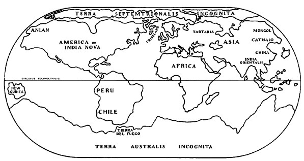 Карта мира Ортелиуса, взятая из атласа «Theatrum Orbis Terrarum», 1570 г.