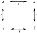 В этой диаграмме А обозначает описание некоторой ситуации, а ~A – отображение этой ситуации с помощью перехода от качественных параметров, присутствующих в описании А, к их представлению через утверждения с нечеткими квантификаторами. Таким образом, ~A есть нечеткая модель ситуации А. Если ситуация А является основанием для перехода с помощью некоторого рассуждения Т к ситуации B, то нам бы хотелось, чтобы существовало нечеткое рассуждение
