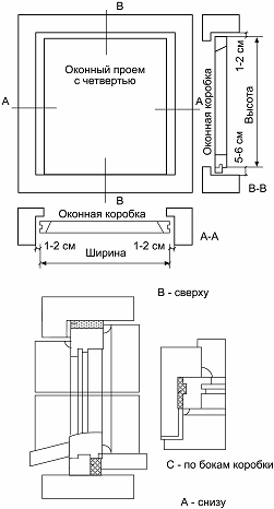 Рис. 5. Установка оконной коробки в проеме без четверти