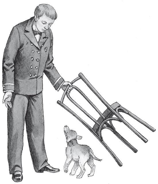 А трусить я стыдился. Набрал я воздуху в грудь и дёрнул в свою комнату. Я думал: «Сразу-то он не бросится на меня, а потом… потом уж как-нибудь…» Но сердце сильно билось. Я быстрыми глазами оглядел комнату – никакого волка. Я уж обозлился – надули, значит, подшутили, – как вдруг услышал, что под стулом что-то ворочается. Я осторожно пригнулся, поглядел с опаской и увидел головастого щенка.