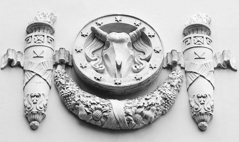 черепа жертвенного животного – букраний, что в переводе с греческого означает «бычий череп». Он также пришел к нам из времен античности. Дополненный гирляндами и жертвенными сосудами, он украшал культовые постройки, гробницы и алтари, напоминая о жертве богам и таинстве смерти. Со временем название «букраний» перешло на все маскароны с головой животного, и их стали использовать в архитектуре как дань античной традиции.Самым почитаемым из сакральных букраний был череп жертвенного быка, символизирующий мужскую энергию, плодородную силу самого солнца. Бык считался атрибутом самого Зевса, символом власти и богатства, поэтому его изображения помещались на первых греческих монетах. И если орел – его космический образ, то бык – земной. Во многих культурах высших богов и правителей изображали с бычьими рогами. Для викингов или рыцарей бычьи рога были знаком доблести, которым они украшали свои ритуальные шлемы. Кроме того, они символизировали жизненный выбор: левый рог – путь стяжательства и распутства, правый – путь истинных знаний.